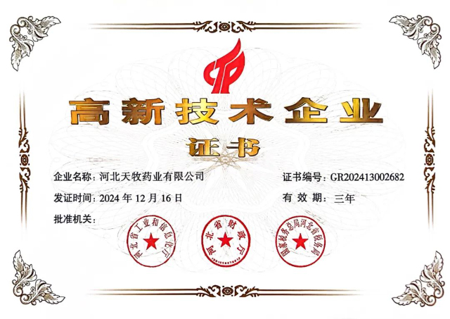 “高新技術(shù)企業(yè)”是國(guó)家為扶持和鼓勵(lì)高新技術(shù)企業(yè)發(fā)展、調(diào)整產(chǎn)業(yè)結(jié)構(gòu)和提升國(guó)家經(jīng)濟(jì)競(jìng)爭(zhēng)力而設(shè)立的專項(xiàng)資質(zhì)認(rèn)定。該認(rèn)定對(duì)企業(yè)核心自主知識(shí)產(chǎn)權(quán)、科技成果轉(zhuǎn)化能力、研發(fā)組織管理水平以及企業(yè)成長(zhǎng)性等核心指標(biāo)有著嚴(yán)格的要求和評(píng)審標(biāo)準(zhǔn),是中國(guó)科技型企業(yè)綜合實(shí)力的權(quán)威認(rèn)證。獲得此項(xiàng)殊榮,不僅是對(duì)河北天牧藥業(yè)多年來(lái)堅(jiān)持技術(shù)驅(qū)動(dòng)、專注創(chuàng)新的充分肯定,也是公司在動(dòng)物藥品和飼料研發(fā)、生產(chǎn)領(lǐng)域技術(shù)領(lǐng)先地位和核心競(jìng)爭(zhēng)力的有力證明。